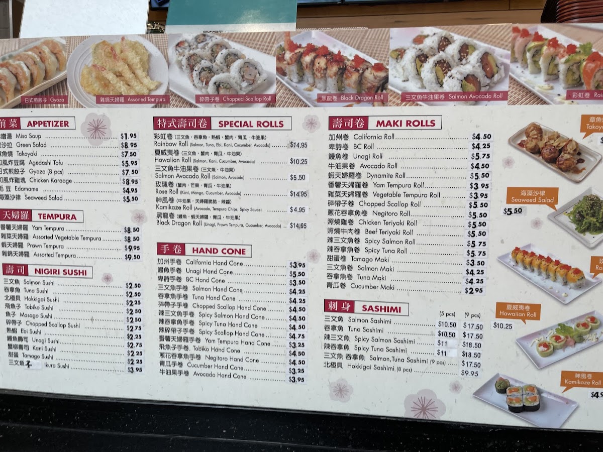 Customers typically use the menu for quick orders or casual dining, making it convenient for both solo diners and small groups. The variety of sushi rolls and rice bowls allows for a balanced selection between seafood, meat, and vegetable-based dishes.
